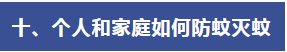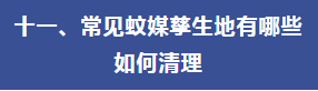 (二)小區(qū)、單位、工地等公共區(qū)域。對室內(nèi)外孳生地進行清理,重點關(guān)注綠化帶、停車場、垃圾或雜物暫存點、地下車庫集水井、排水溝、樓梯間、樓房反墚及雨水溝、建筑物凹陷處等,主要采取清理衛(wèi)生死角、翻盆倒罐、沙土填埋、投放滅蚊幼劑等方式。
